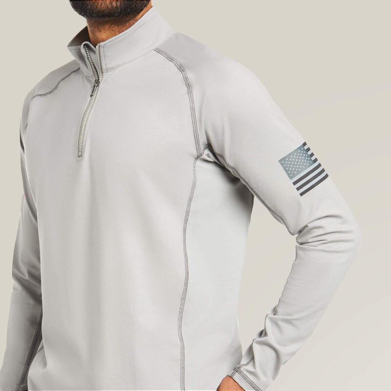 Ariat Men's Flame Resistant Combat Stretch Patriot 1/4 Zip Work Shirt Silver - 10035420