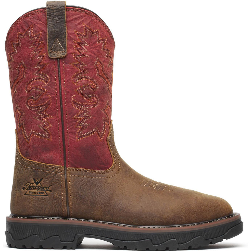 Thorogood Men's Buffalo Ridge 11" Nano Square Toe Waterproof Western Work Boot - Brown/Scarlet - 804-4341