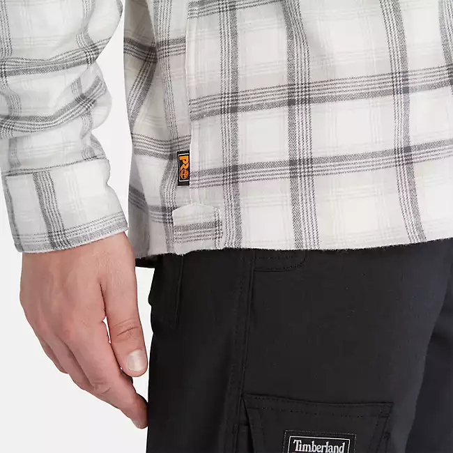 The classic flannel shirt updated with details that add performance, comfort, and durability. Our long-sleeve Woodfort shirt is crafted from a lightweight, comfort-touch flannel fabric with our Timberland PRO® FLEX technology maximum mobility features so you can bend, reach, and stretch without restriction, plus reinforcements in key areas for durability. Its button-down collar and easy-grip buttons are made for work and casual time. The original fit gives you room to move throughout the shoulders, chest, waist, and sleeves.